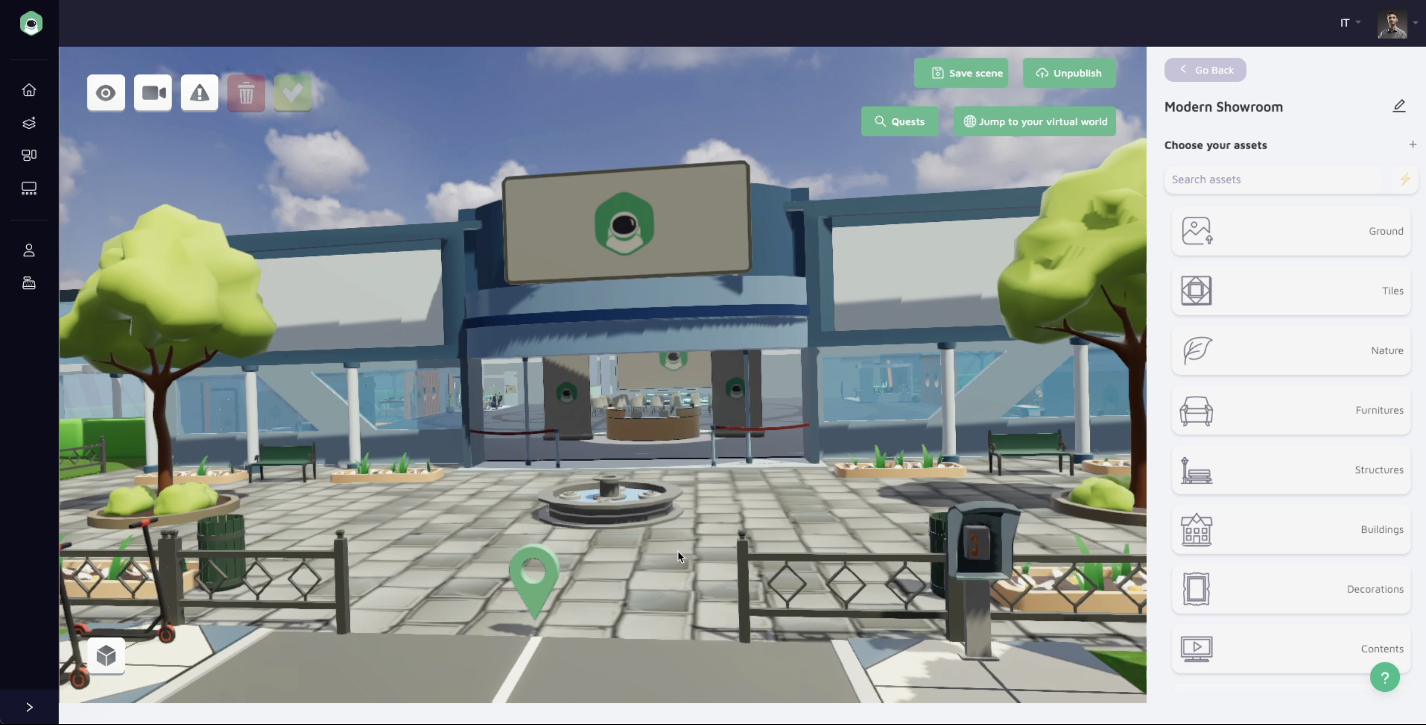It is a simple and intuitive platform that allows you to build entire **virtual worlds**. Coderblock Studio is accessible **online** (via browser) to anyone who wants to create buildings, scenarios and virtual experiences, **without requiring specific skills in 3D modeling or software development**.