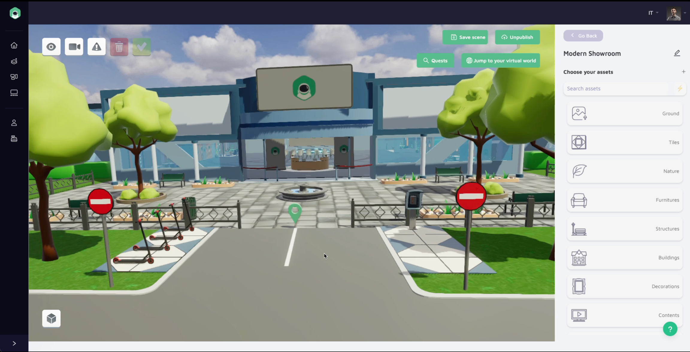 Within the tool, you can start from a blank scene or use the extensive selection of 3D models in the library (over 1,000 virtual objects). Alternatively, you can start with a pre-built template that we've provided to further streamline the creation process.