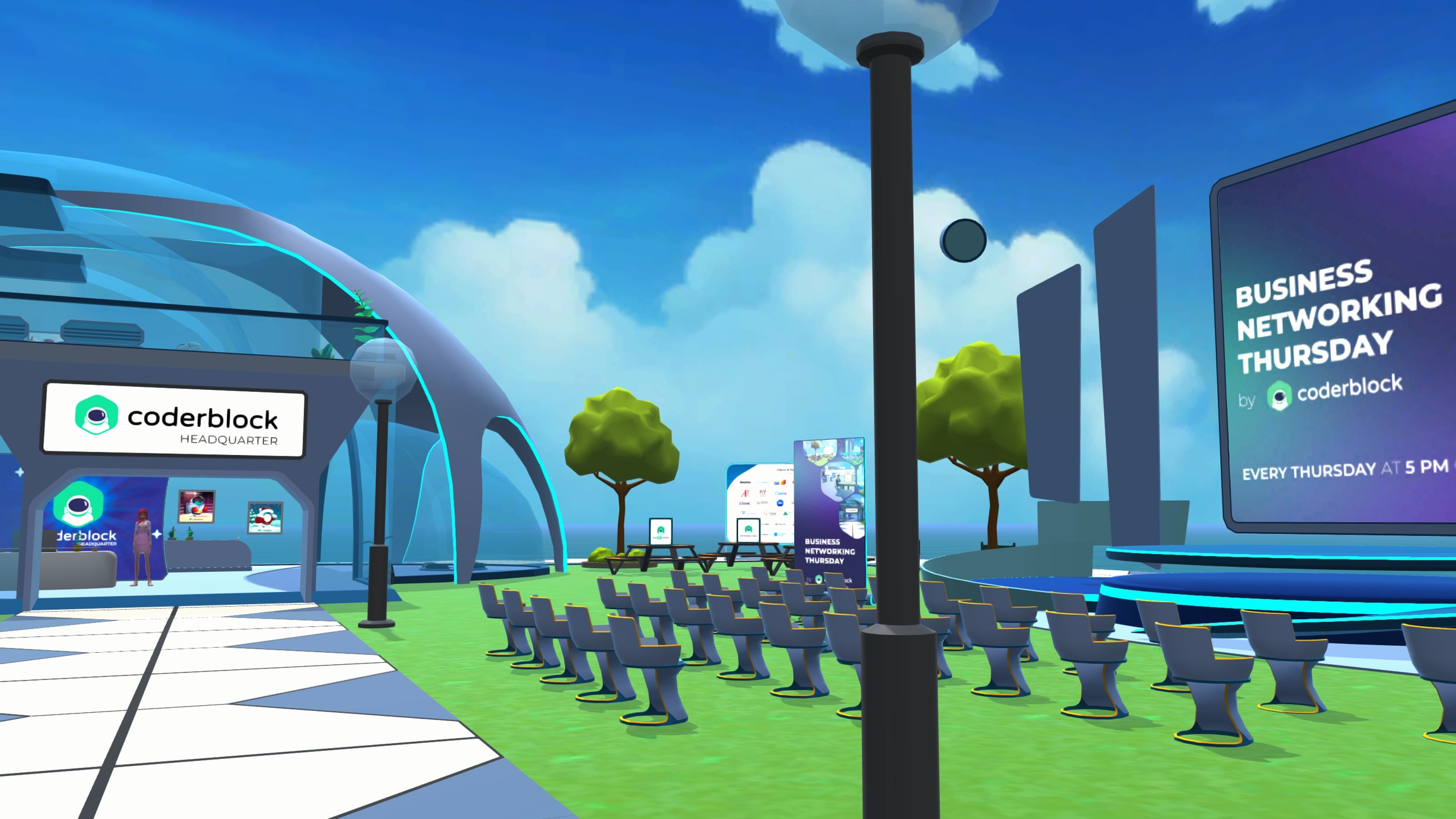 Spaces are 3D environments featuring scenarios, buildings, NPCs, quests, and customized experiences. Unlike lands, these scenes are not located within a shared map but are separate worlds that can be shared and accessed directly via URL. They are ideal for hosting events, activities, and initiatives tailored to a specific target audience or for creating exclusive environments accessible to a limited group of users.